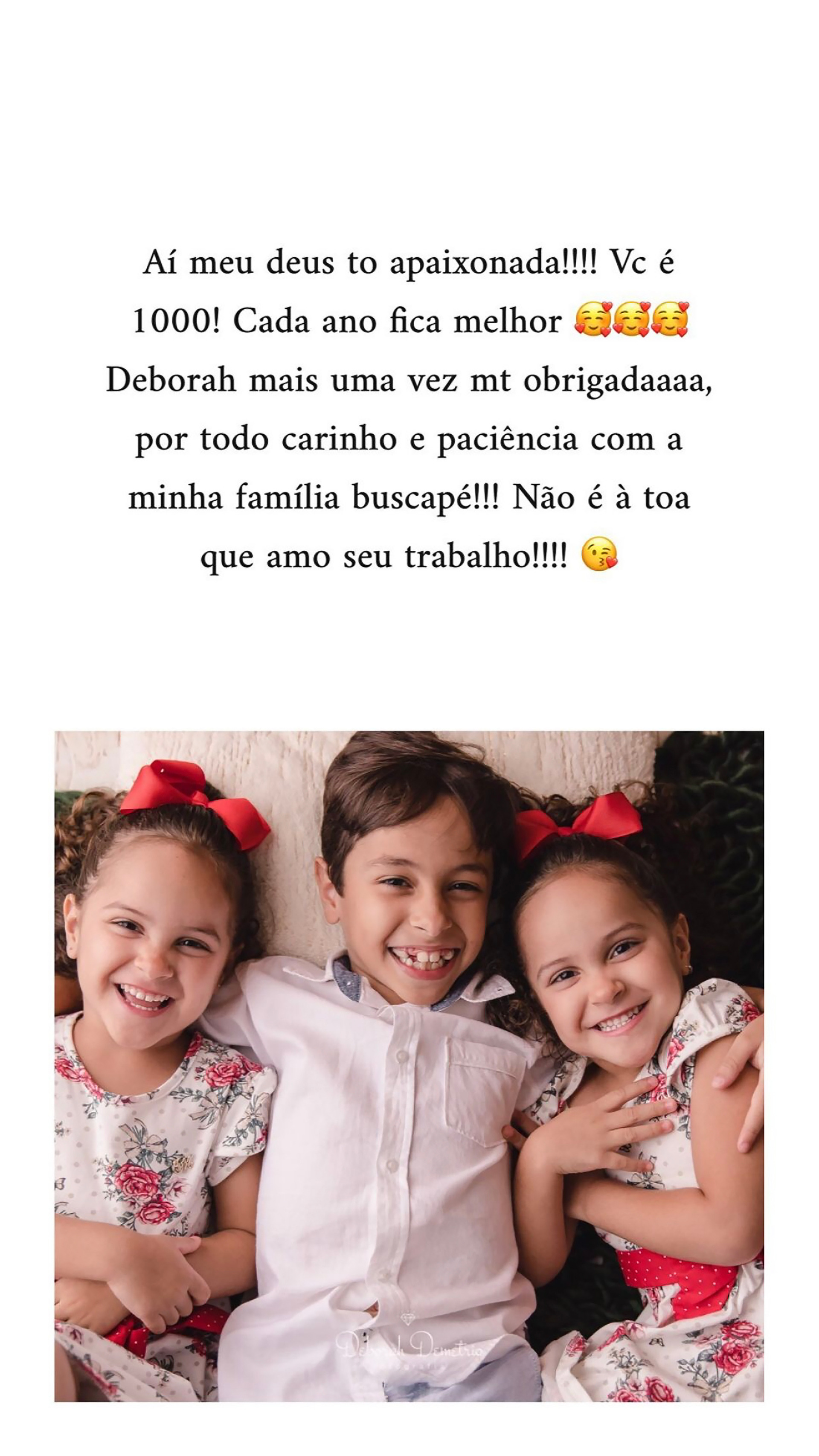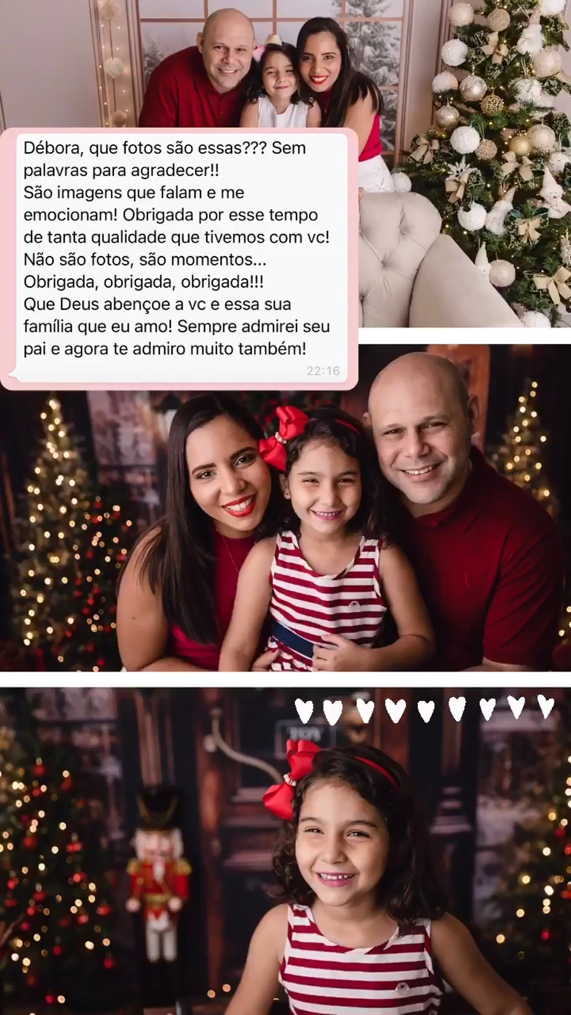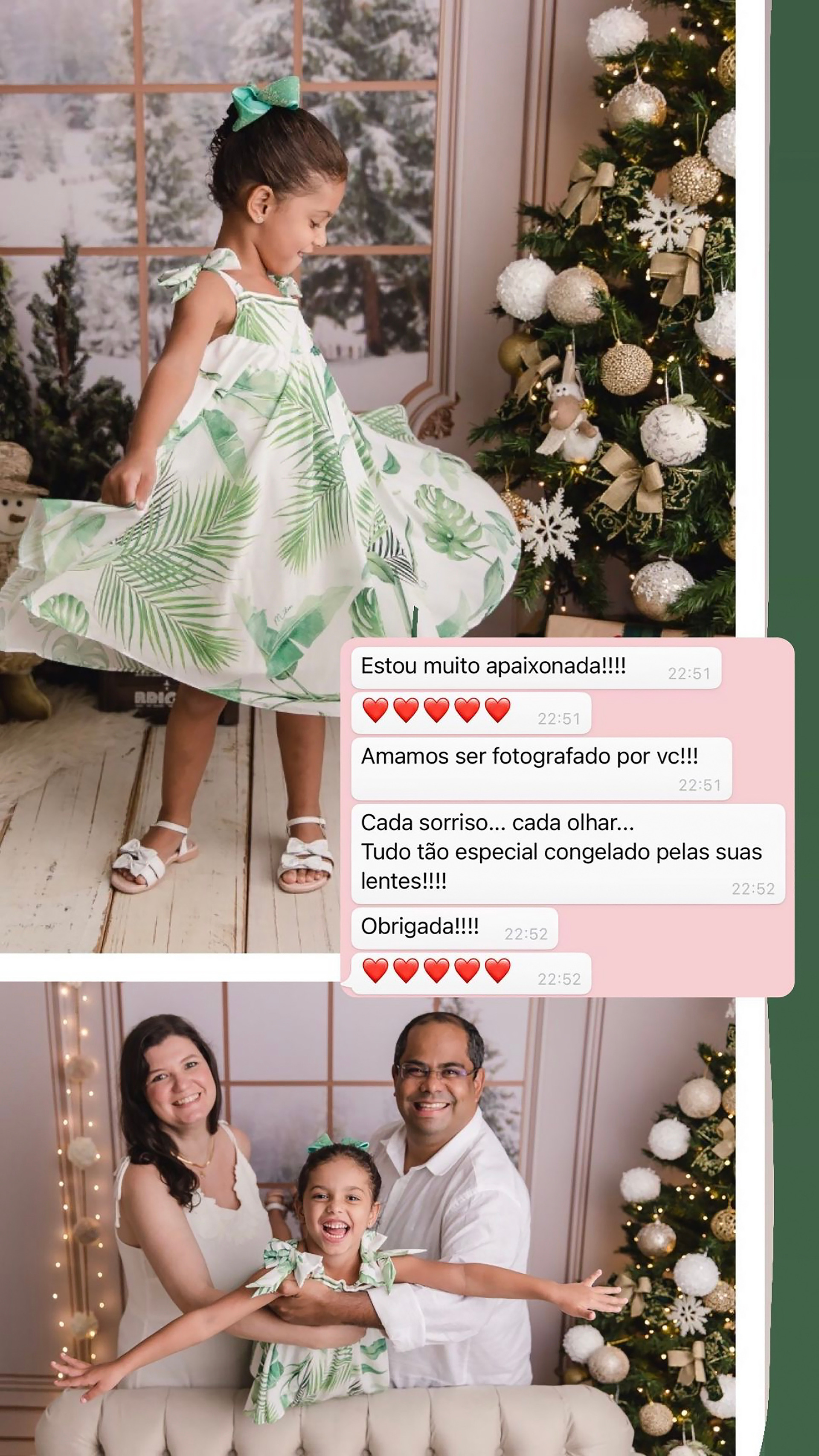 Está aberta a temporada de sonhos, magia e encanto, com ensaios lindos e cheios de amor! Durante os meses de novembro e dezembro, receberemos as famíias para registrar momentos muito especiais dessa época cheia de luz e alegria! É tempo de agradecer, brincar, sorrir e celebrar o que realmente importa nessa data tão significativa: a família e o amor!